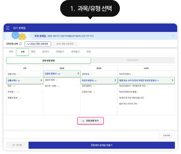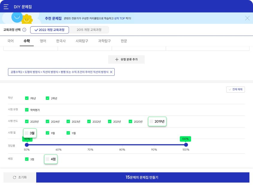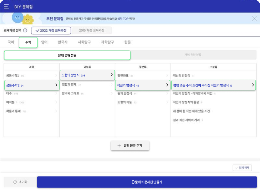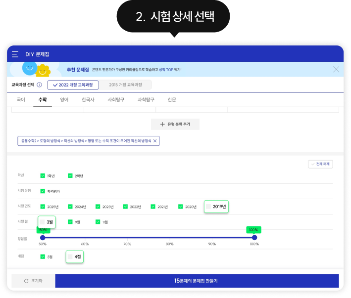 원하는 조건을 조합하여 나만의 문제집을 만들어 보세요.