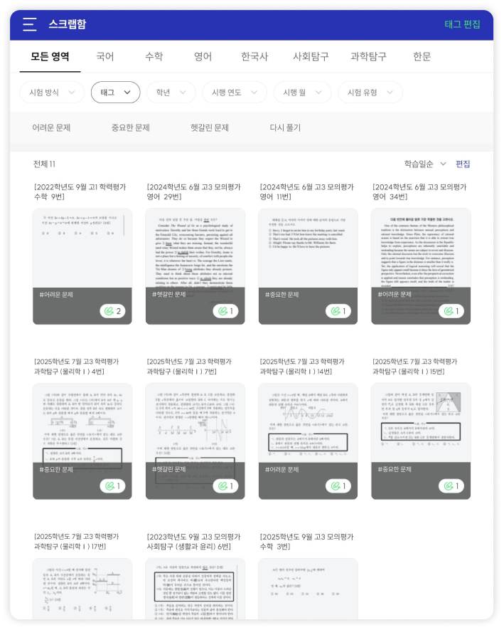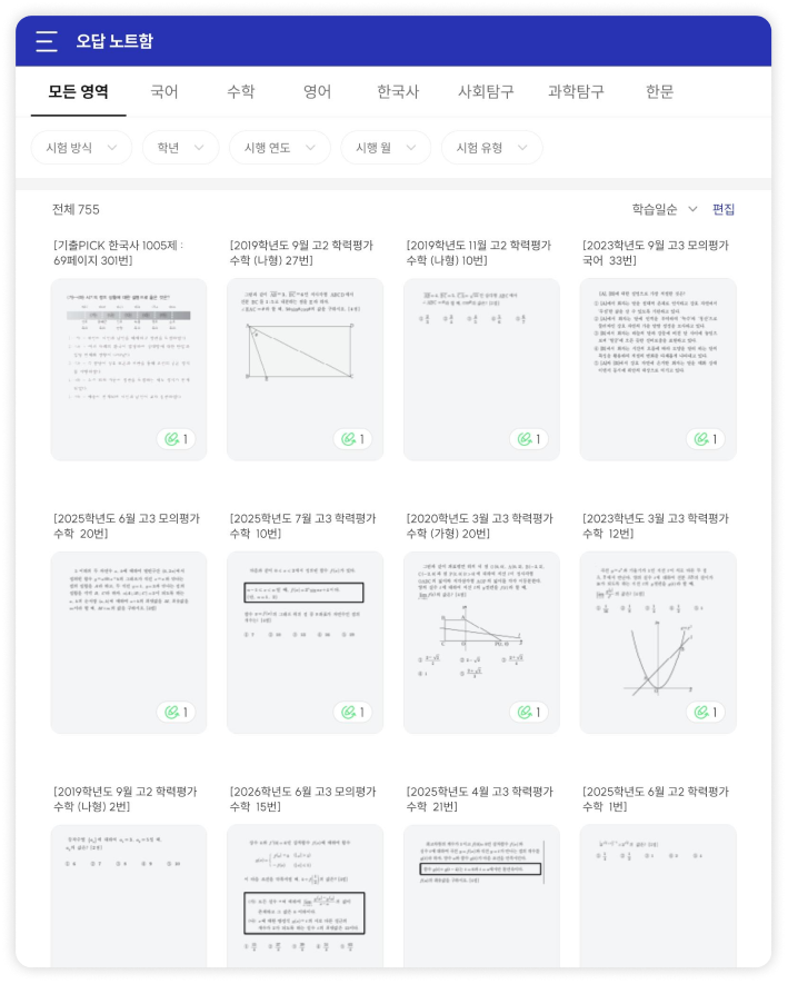 고등 전 과목 기출 확인